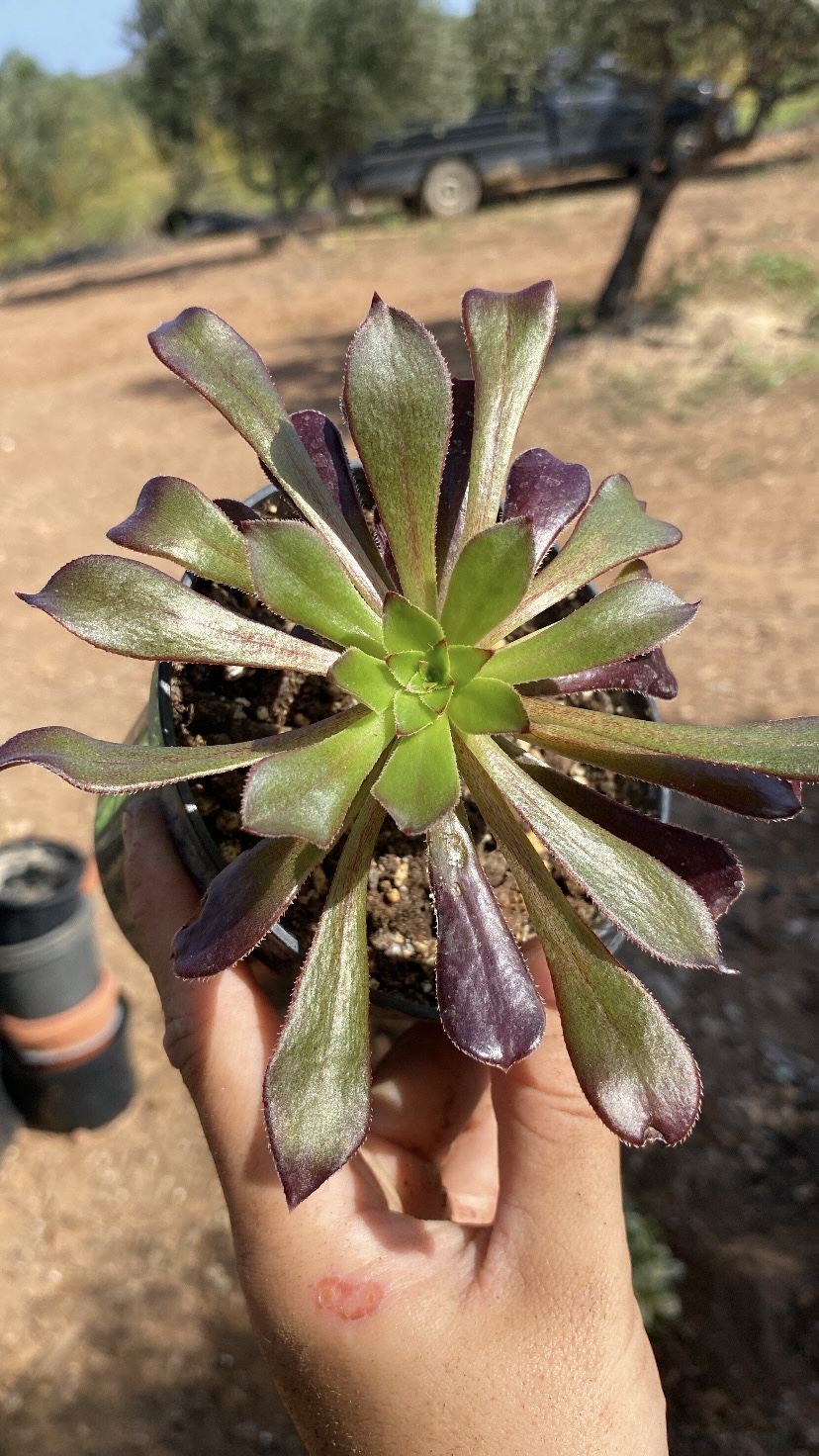 Η Aeonium 'Zwartkop' είναι ένα ξεχωριστό παχύφυτο με σκούρα βελούδινα φύλλα που σχηματίζουν ροζέτα. Αγαπά τον ήλιο, αποκτά βαθύτερο χρώμα με το φως και χρειάζεται αραιό πότισμα. Ένα φυτό με έντονη παρουσία και χαρακτήρα, ιδανικό για συλλογές ή μοντέρνους χώρους.