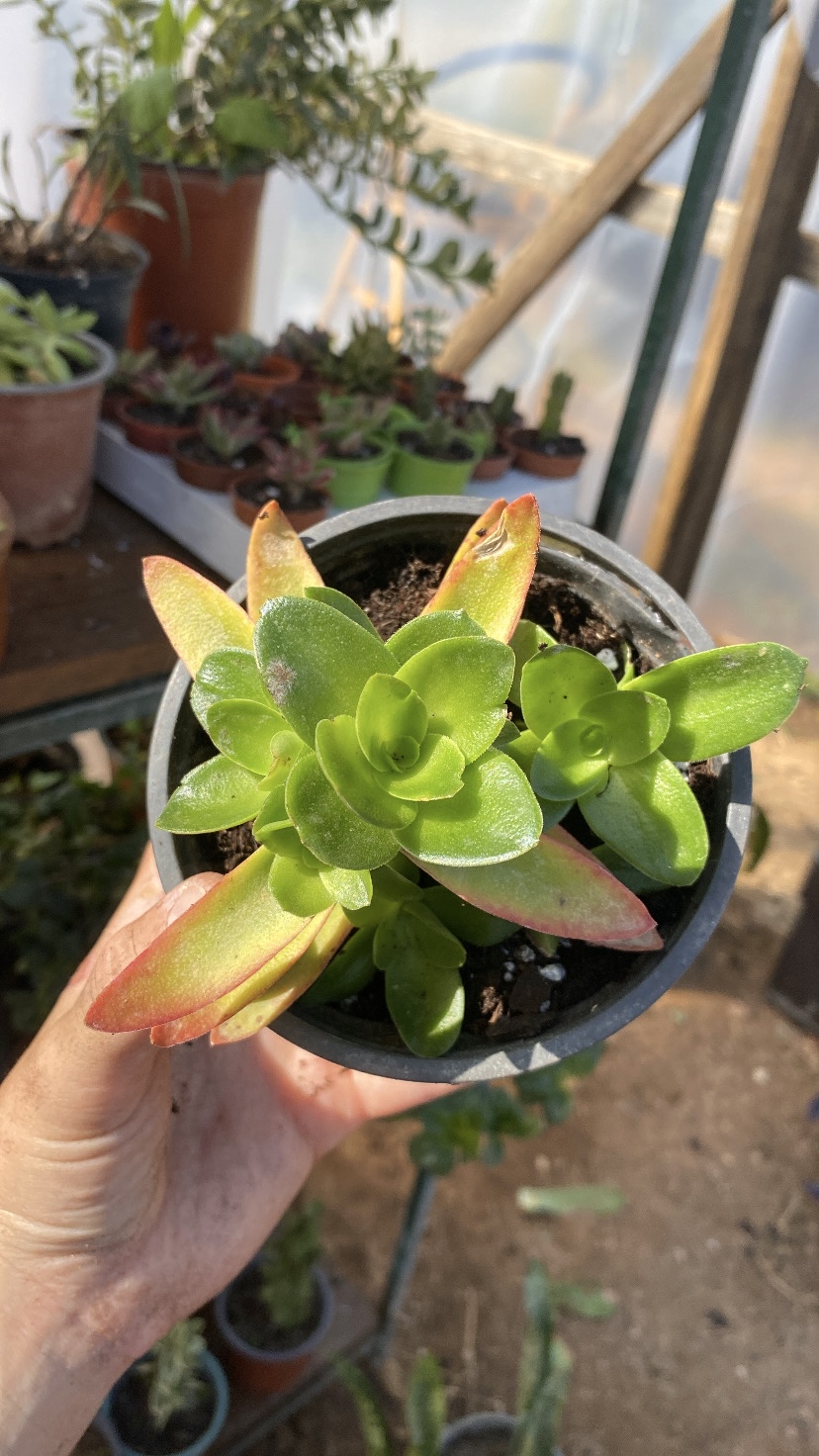 Η Crassula capitella 'Campfire' είναι ένα εντυπωσιακό παχύφυτο με φύλλα που αλλάζουν από πράσινα σε πορτοκαλί και κόκκινα όταν δέχονται ήλιο. Δημιουργεί εντυπωσιακές αποχρώσεις και είναι ιδανική για γλάστρες, παρτέρια ή συνθέσεις παχυφύτων. Ανθεκτική και εύκολη στη φροντίδα, λατρεύει το φως και το φτωχό χώμα.