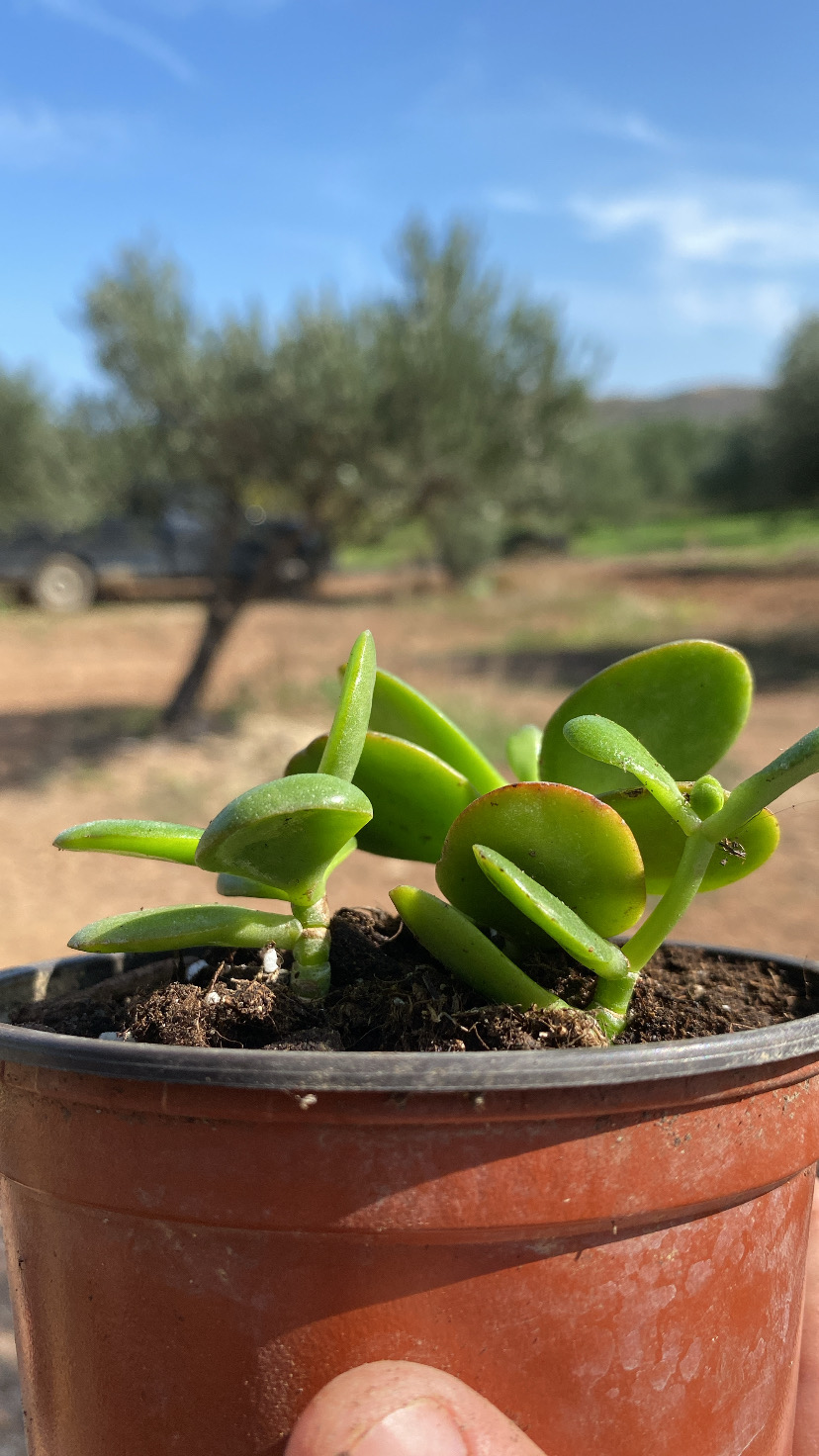 Η Crassula ovata είναι ένα ανθεκτικό παχύφυτο με σαρκώδη, γυαλιστερά φύλλα σε έντονο πράσινο χρώμα. Θεωρείται σύμβολο τύχης και ευημερίας. Ιδανική επιλογή για εσωτερικό ή εξωτερικό χώρο, χρειάζεται λίγο νερό και πολύ φως.