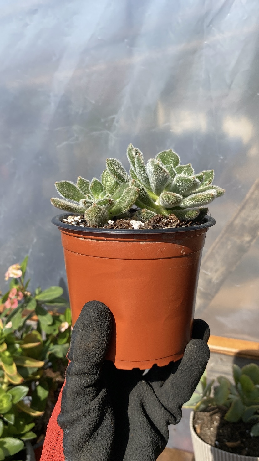 Μια χαριτωμένη Echeveria με πυκνά, τριχωτά φύλλα που λαμπυρίζουν στο φως. Δημιουργεί ροζέτα και ανθίζει με εντυπωσιακά κόκκινα-πορτοκαλί λουλούδια. Εύκολη στη φροντίδα και ανθεκτική.