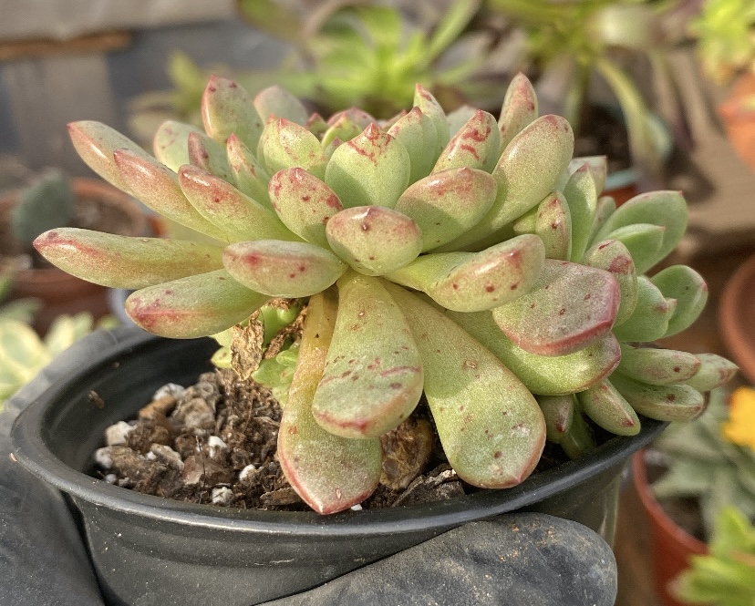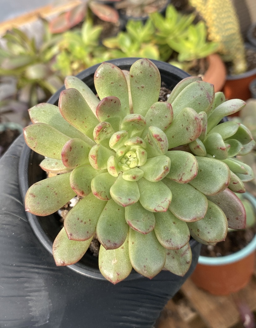 Η Echeveria τυπου sp. είναι παχύφυτο με συμμετρική ροζέτα και σαρκώδη φύλλα, ιδιαίτερα αγαπητό για την καθαρή γραμμή και την ανθεκτικότητά του. Αγαπά το άφθονο φως και χρειάζεται αραιό πότισμα, μόνο όταν το χώμα στεγνώνει πλήρως. Είναι εύκολο στη φροντίδα και ιδανικό για φωτεινούς εσωτερικούς χώρους ή προστατευμένο μπαλκόνι.