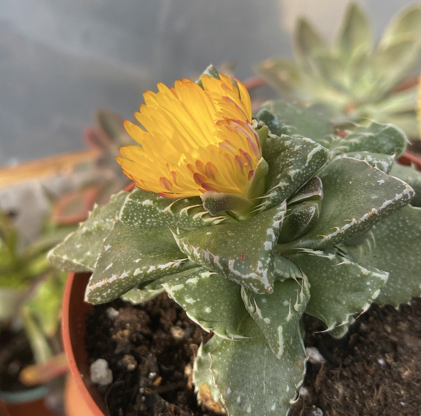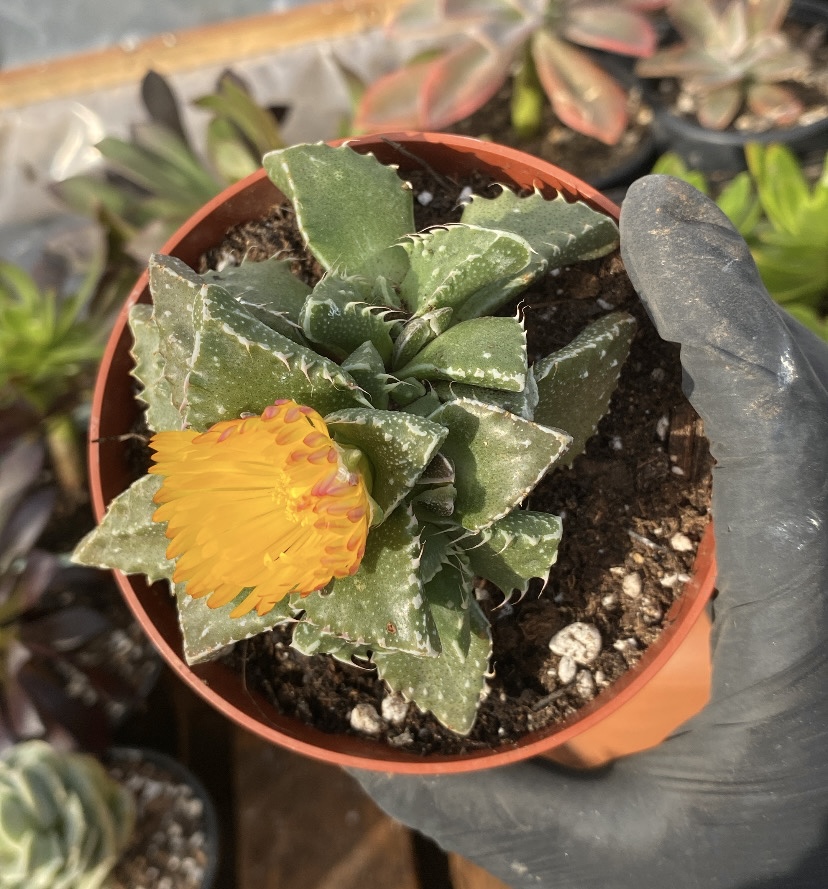 Η Faucaria tigrina είναι ένα ιδιαίτερο παχύφυτο με τριγωνικά, σαρκώδη φύλλα και χαρακτηριστικά «δοντάκια» στις άκρες, που της χάρισαν το όνομα «στόμα τίγρης». Είναι ανθεκτικό και εύκολο στη φροντίδα, αγαπά το φως και με τις σωστές συνθήκες χαρίζει εντυπωσιακά κίτρινα άνθη. Ιδανική επιλογή για συλλέκτες αλλά και για όσους θέλουν κάτι διαφορετικό χωρίς απαιτήσεις.