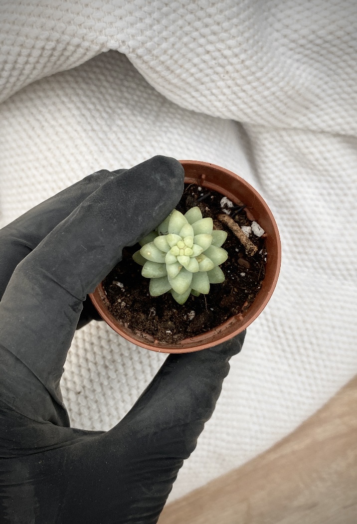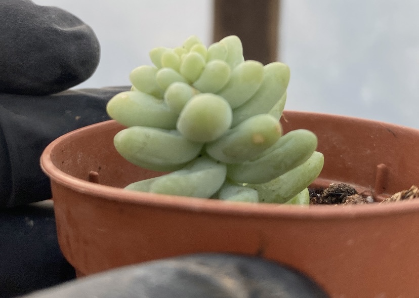 Το Sedum burrito είναι παχύφυτο με σαρκώδη, στρογγυλεμένα φύλλα σε απαλό πράσινο χρώμα, που αναπτύσσεται σταδιακά σε κρεμοκλαδή μορφή. Είναι εύκολο στη φροντίδα, αγαπά το φως και χρειάζεται αραιό πότισμα, μόνο όταν το χώμα στεγνώνει πλήρως. Τα φύλλα του είναι εύθραυστα αλλά ριζώνουν εύκολα, κάτι που το κάνει ιδανικό και για αρχάριους. Ταιριάζει πολύ σε ράφια, κρεμαστά σημεία και φωτεινούς εσωτερικούς χώρους.